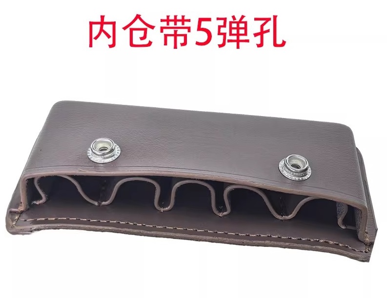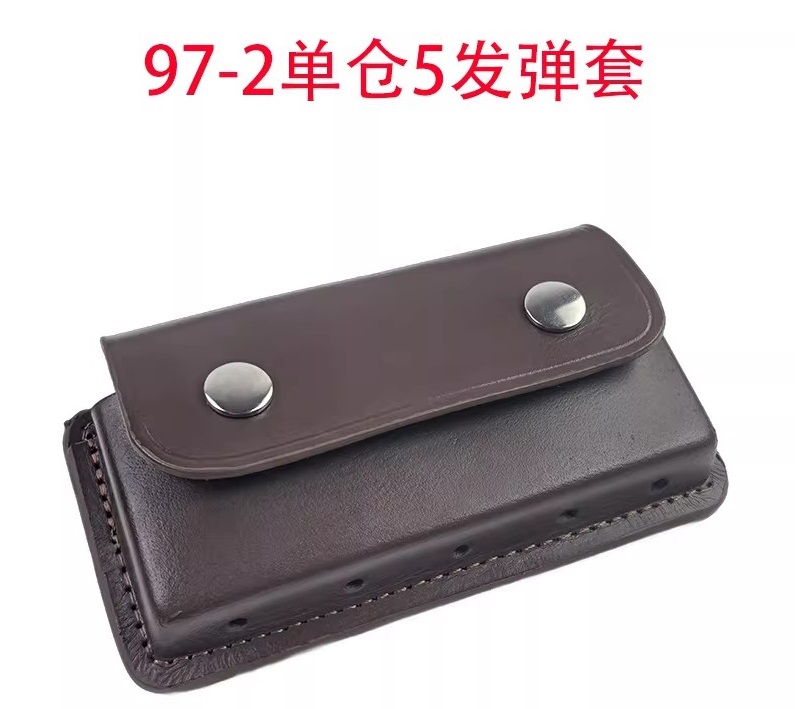 DESC:97-2 Single Chamber 5-Pocket Leather Holster for Type 97 18.4mm Birdshot, Yellow Foldable 5-Round Magazine, Genuine Double-Row Pouch
